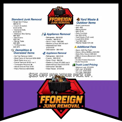 From bulky furniture to full-property cleanouts, Fforeign Junk Removal delivers fast, reliable service backed by real local reviews.